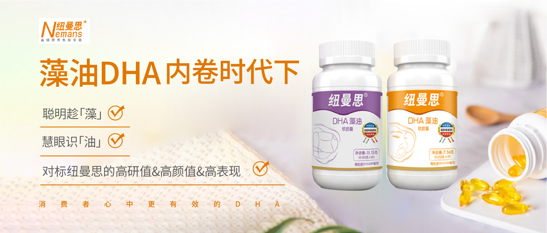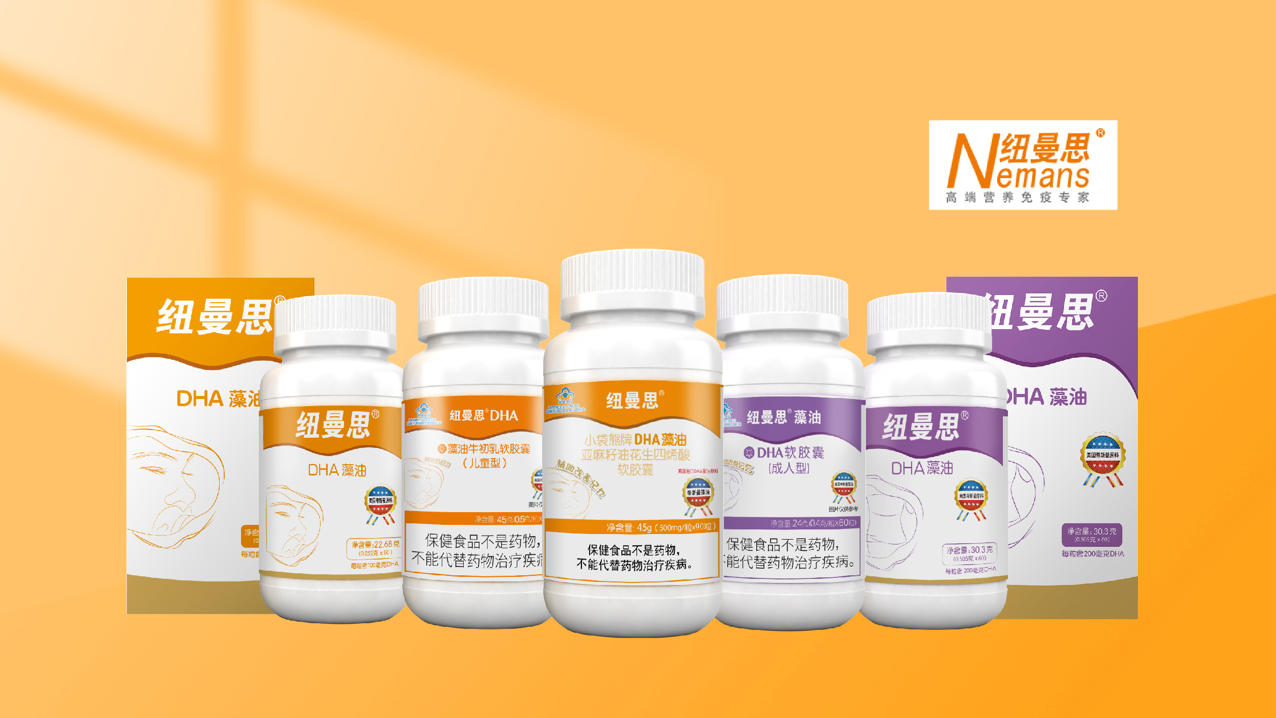 2022年5月,通過(guò)多年C端鏈接,以及對(duì)核心消費(fèi)人群調(diào)研、用戶心理與場(chǎng)景的洞察深化,從配方、含量、人群差異化,紐曼思重新定位細(xì)分DHA產(chǎn)品線,推出三款新品:紐曼思藻油DHA軟膠囊(成人型)、紐曼思DHA藻油牛初乳軟膠囊(兒童型)、紐曼思DHA藻油亞麻籽油花生四烯酸軟膠囊,均為藍(lán)帽保健食品*,以滿足不同消費(fèi)人群、不同功能和劑量的需求,覆蓋到更多消費(fèi)群體。