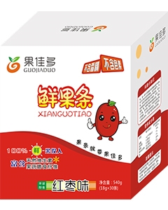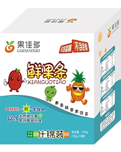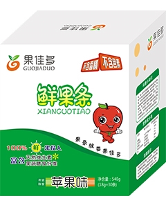 • 主營產(chǎn)品:果佳多鮮果條,有菠蘿味、蘋果味、紅棗味、草莓味、雪梨味、獼猴桃味等多種選擇