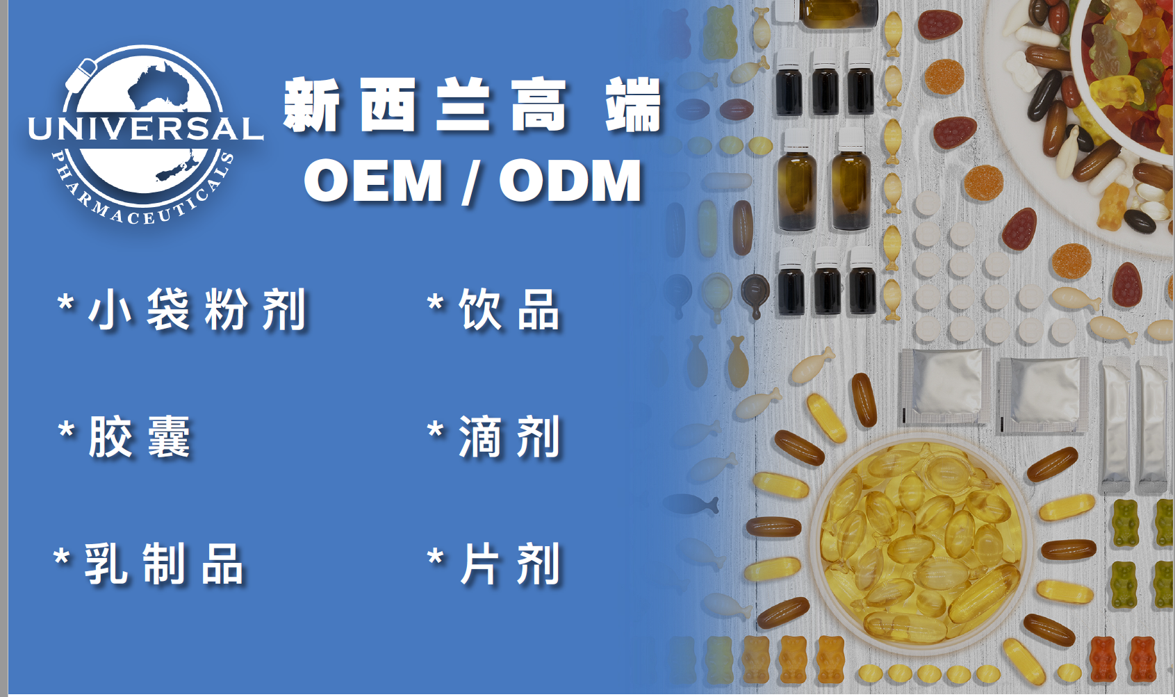新西蘭環(huán)球制藥集團擁有先進的生產(chǎn)設備,多種類型包裝生產(chǎn)線,專業(yè)精英團隊為您提供全方位一站式服務,為客戶提供多元化、多品類產(chǎn)品服務方案,涵蓋從原料提取、批文落戶、標準制訂、配方設計、貼牌定制、加工成品等一系列OEM和ODM服務。