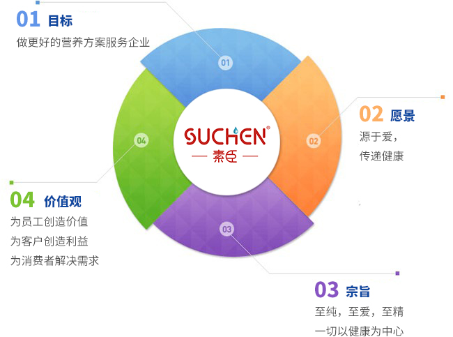 SUCHEN素臣隸屬于江西素臣大健康產(chǎn)業(yè)有限公司,是一個(gè)集研發(fā)、銷售、服務(wù)為一體的新型營養(yǎng)健康品牌,致力于為寶寶提供安全、健康、營養(yǎng)的產(chǎn)品。 產(chǎn)品覆蓋:調(diào)制乳粉、營養(yǎng)撒劑、凝膠糖果、進(jìn)口滴劑、固體飲料、營養(yǎng)輔食等系列產(chǎn)品。