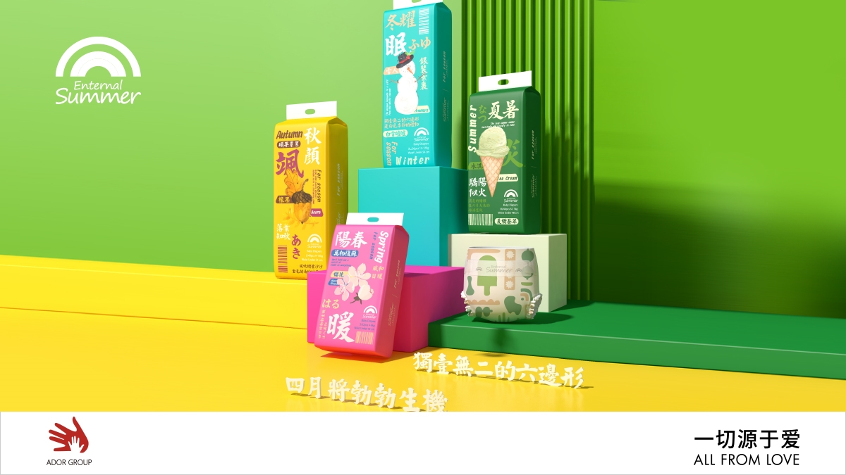 盛夏光年(Enternal Summer)紙尿褲誕生于2017年,曾在Beaba品牌旗下運營,憑借超凡顏值、高端品質(zhì)脫穎而出,贏得了百萬媽媽的認可。2020年初以“有熱愛就是盛夏“為主題,在全球范圍內(nèi)征集國內(nèi)外獨立設(shè)計師作品,歷經(jīng)超過半年的篩選與改進,盛夏光年(Enternal Summer)成為了獨立的品牌。品牌與Air Lab(空氣實驗室)結(jié)合,致力于發(fā)現(xiàn)無限透氣的可能,讓科技賦能產(chǎn)品。有熱愛就是盛夏,盛夏光年不僅讓你成為時尚的焦點,還讓熱愛在生活中蔓延。