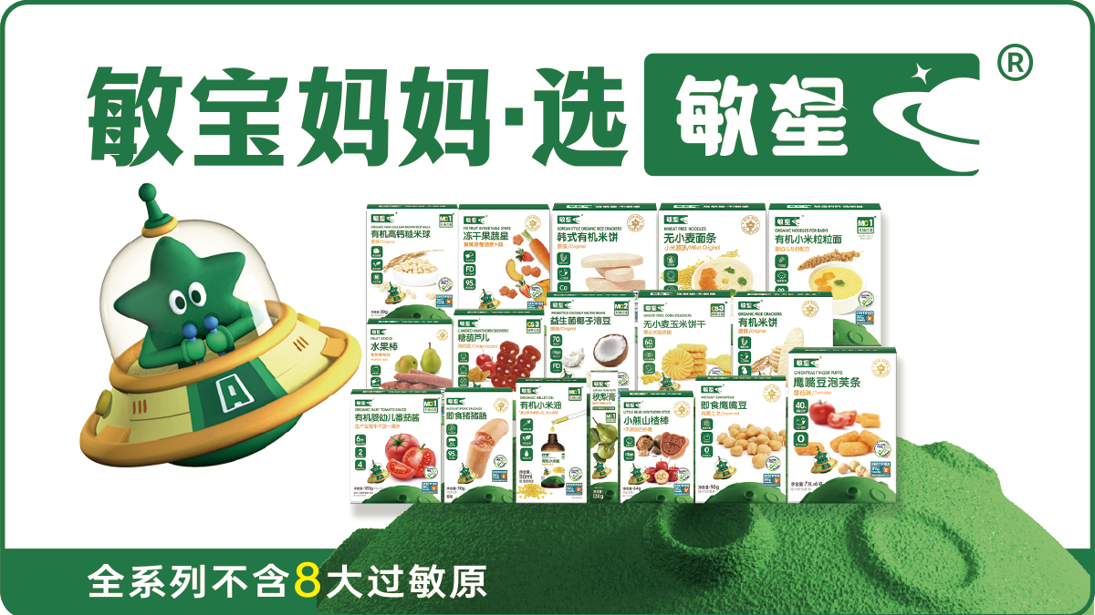 敏星全系列產品均不含八大常見食品過敏原,這大大降低了敏寶發(fā)生過敏反應的風險。然而,鑒于每位敏寶的體質差異以及過敏源的多樣性,敏星無法確保對所有敏寶均無過敏,但我們始終致力于為敏感體質的寶寶提供更安全、更健康的選擇。