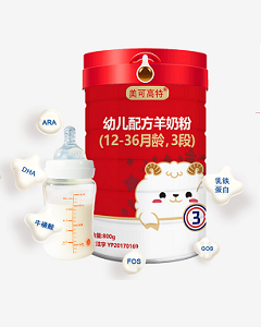 • 品牌特色:美可高特羊乳有限公司成立于1994年,“美可高特” 為公司主打品牌之一。美可高特現(xiàn)有幼兒配方羊奶粉、成人系列配方羊奶粉、羊奶片等各類羊乳制品,其綠色優(yōu)質(zhì)奶源均來自無污染山區(qū)活潑好動的薩能奶山羊,奶汁無激素,無抗生素。羊奶營養(yǎng)專業(yè)人士研制的營養(yǎng)配方、高科技除膻工藝和真空充氮技術(shù)以及嚴苛的生產(chǎn)檢驗標準造就了真正讓消費者放心食用的優(yōu)質(zhì)羊奶。