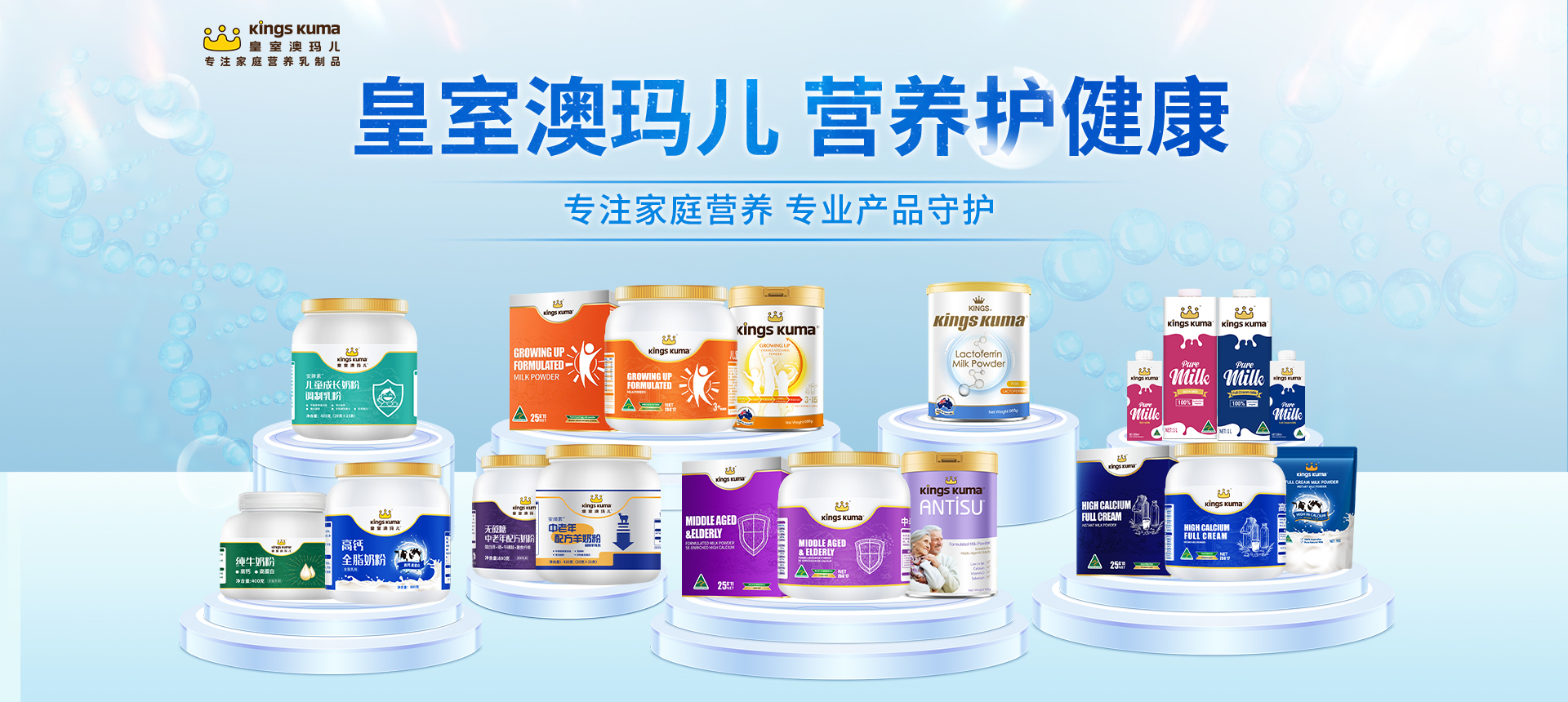 Kings Kuma皇室澳瑪兒,是專注于家庭營養(yǎng)的乳制品品牌,品牌專注于家庭營養(yǎng)、健康的乳制品研發(fā)、生產(chǎn)及銷售。