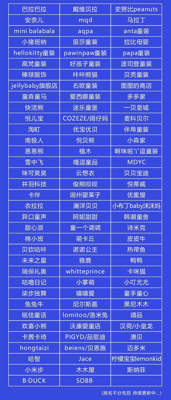 支持協會:湖州織里童裝電商協會、浙江省童裝協會、廣東童裝協會、溫州童裝商會、溫州童鞋商會、東莞虎門童裝協會、青島童裝協會、中國母嬰玩具協會