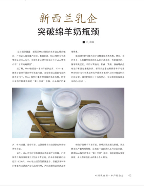 1)乳品與人類《新西蘭乳企突破綿羊奶瓶頸》(2018-3)劉麗