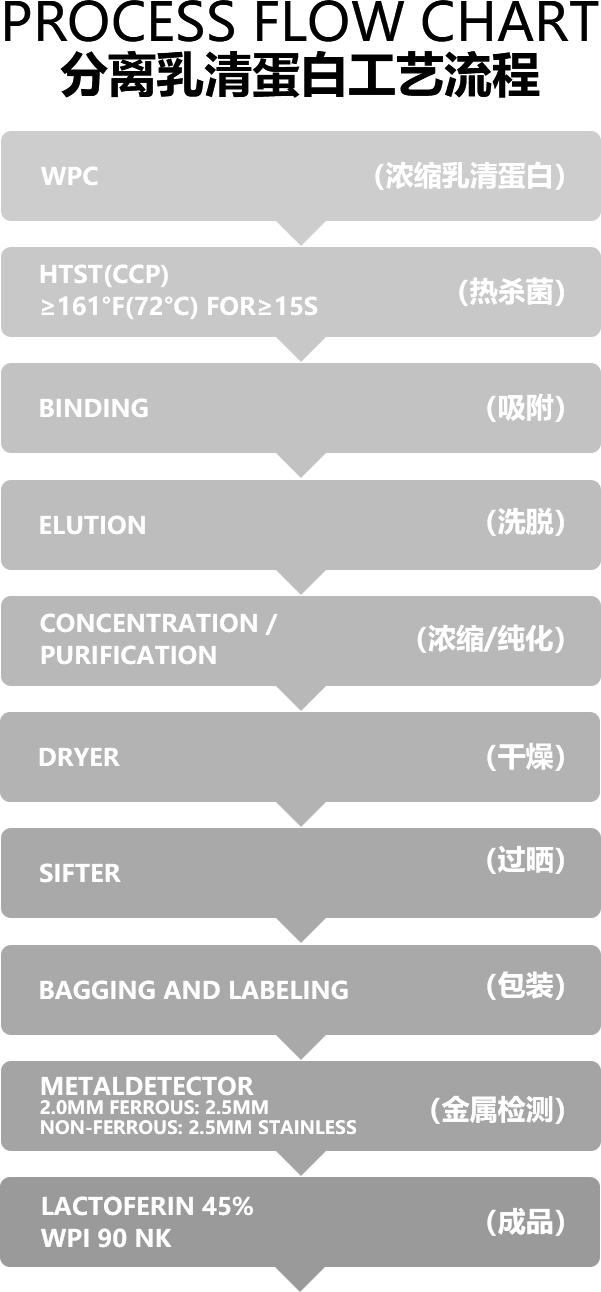 富含乳鐵蛋白的分離乳清蛋白粉,和95%高純度乳鐵蛋白營養(yǎng)強化劑,二者具體的生產(chǎn)工藝在此做一些解讀,供專業(yè)人士參考。