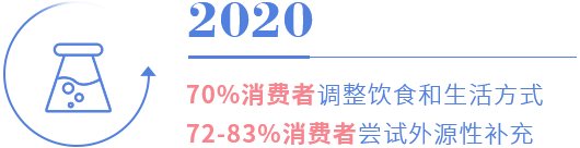調查顯示,2020年在全球范圍內,70%的消費者正在改變飲食和生活方式,以提高免疫水平;72%以上的消費者認識到免疫系統(tǒng)不良與健康問題的易感性有關聯(lián),并正在嘗試營養(yǎng)補充。而2019年相應的數據報告中,只占53%左右的消費者。
